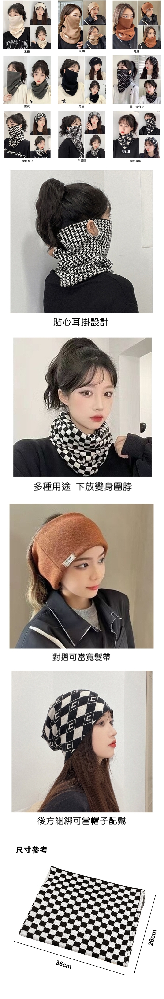 顏色:米白,粉膚,焦糖,鐵灰,黑色,黑白格子,千鳥紋,黑白菱格C,黑白蝴蝶結