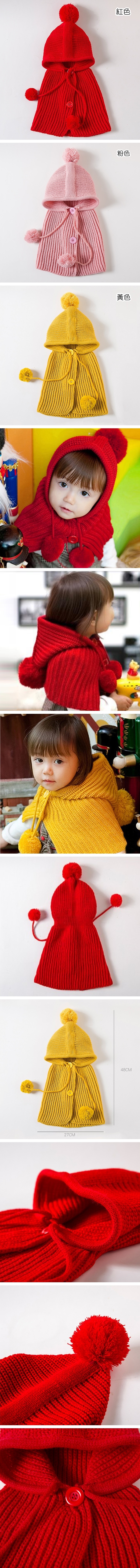 小紅帽針織毛線帽套脖 圍脖 斗篷 披風 披肩 聖誕節 耶誕節 大紅 新年 過年 女童 兒童 童裝 橘魔法 現貨【BB6409】