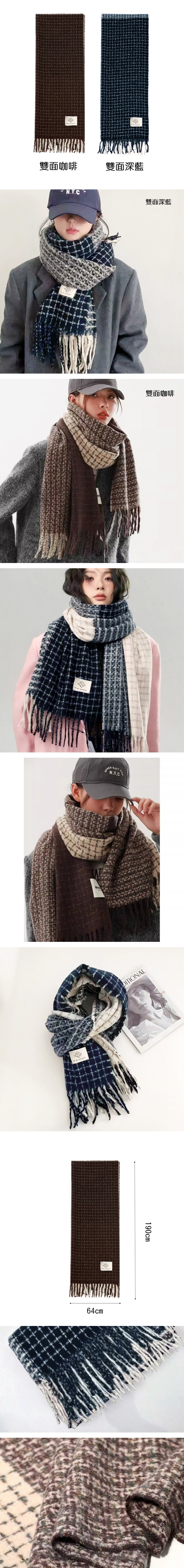 格子小標籤仿羊絨圍巾 披肩 披巾 毯子 大人 配件 配飾 寒流 滑雪 保暖 橘魔法 現貨【BB7114】