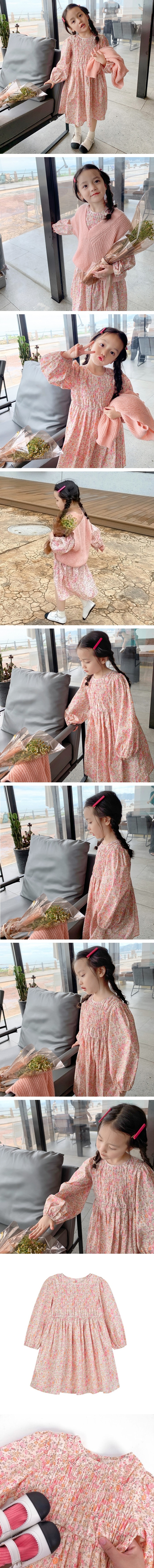 粉嫩碎花抓皺長袖洋裝 連身裙 連衣裙 女童 童裝 兒童 橘魔法 現貨【BB8779】