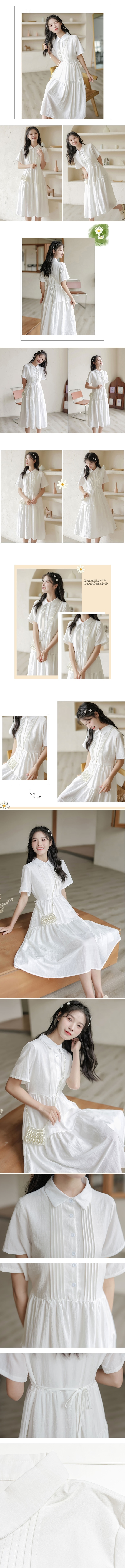 純白摺線襯衫領洋裝 大人 畢業典禮 表演 演講 連身裙 連身洋裝 婚禮穿搭 喜酒 婚宴 裙子 童裝 橘魔法 現貨【BB8397】
