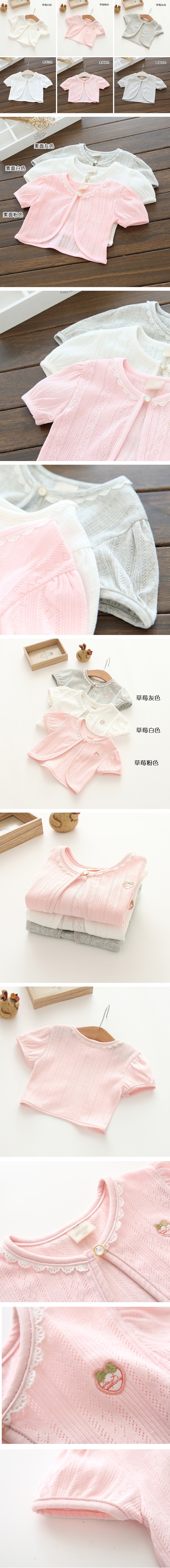 素面 草莓蕾絲簍空單扣小外套 短袖外套 薄外套 禮服搭配 婚禮 喜宴 花童 女童 兒童 童裝 橘魔法 現貨【BB6981】