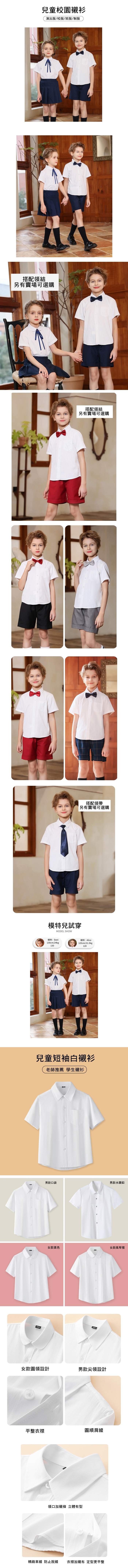 經典學生白色短袖襯衫