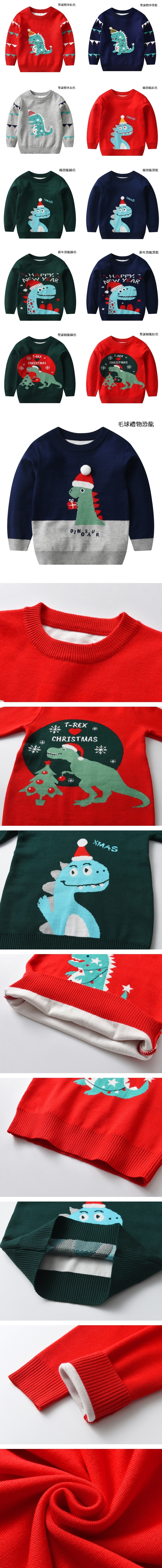 聖誕新年恐龍系列針織毛衣 針織衫 長袖上衣 線衫 聖誕節 大紅 耶誕節 男童 兒童 童裝 橘魔法 現貨【BB7090】