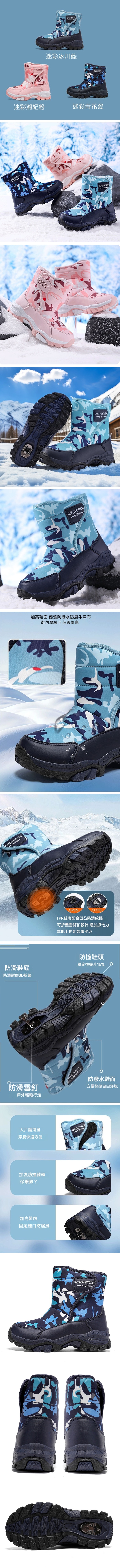 迷彩滿印厚保暖雪地扣雪靴 防潑水 靴子 童靴 滑雪 防雪 童鞋 女童 男童 大童 兒童 童裝 保暖 防寒 橘魔法 現貨【BB8922】