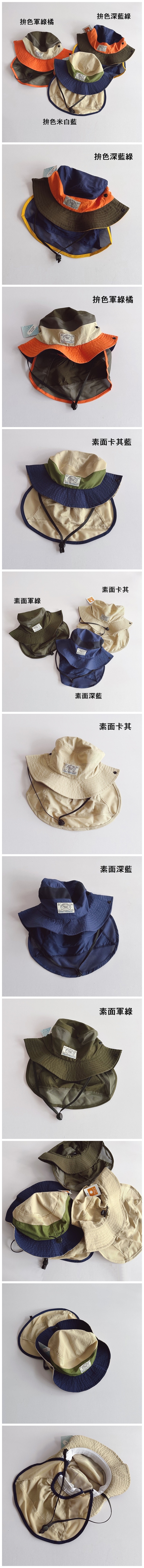 韓系拚色標布漁夫帽 防風繩 披肩帽盆帽 帽子 飛行帽 露營 登山 中性款 男童 女童 童裝 兒童 童帽 橘魔法 現貨【BB8168】