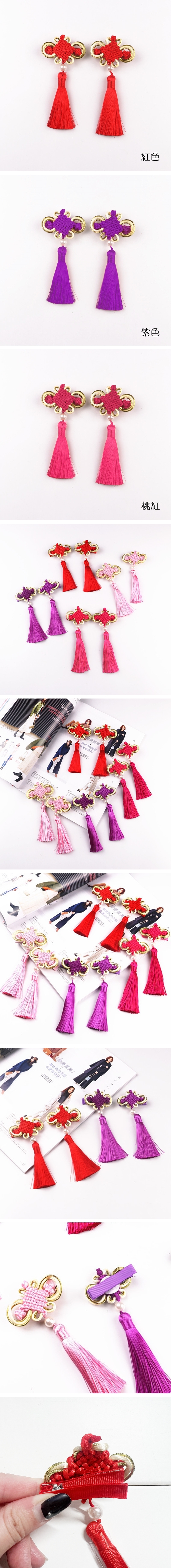 (2入) 古典金絲中國結流蘇髮夾 髮飾 配飾 中國風 過年 新年 大紅 週歲 女童 兒童 童裝 橘魔法 現貨【BB7252】