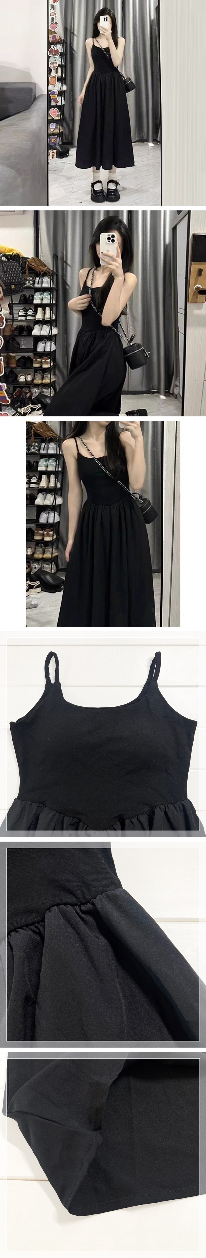 素色彈性細肩洋裝