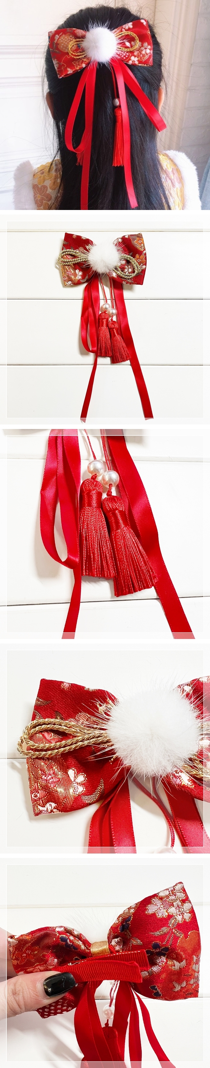 款式:毛球花布蝴蝶結
